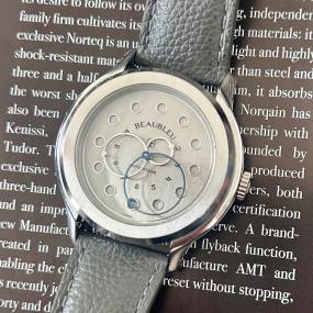 Je cherchais une montre originale et j'avais été attiré par cette marque qui propose des montres toute en rondeur. J'ai beaucoup hésité entre les différents modèles. Les modèles GMT ont deux couronnes et pour les intégrer, la forme du boîtier est différente et perd de son intérêt pour moi. Sur cette Vitruve comme sur les Ecce non GMT, les cornes se rejoignent sur les tranches de la montre en donnant l'impression qu'elles "enserrent" un boitier rond. Le cadran est en acier brossé avec des trous cerclés en guise d'indexes. Le bord de ces trous ressemble à un anneau fin et poli qui contraste avec la finition brossée du cadran, créant des effets intéressants avec la lumière. Les aiguilles sont en forme de cercle bien entendu puisque c'est la signature de Beaubleu, elles sont en acier poli et celle des secondes est bleuie. Contrairement à certaines personnes qui trouvent que la lecture de l'heure est difficile, ce n'est pas mon avis, je n'ai pas de mal à lire l'heure et cela grace aux points sur les aiguilles des heures et minutes qui permettent de localiser l'extrémité de "l'aiguille". Les finitions sont vraiment belles, avec une alternance de poli et de brossé. Le poli est magnifique, c'est presque du miroir ! Le fond est ouvert afin de voir le mouvement. On trouve des gravures autour du verre saphir qui rappelle la marque, la collection, le numéro de série (série limitée à 888 exemplaires). Le mouvement est un peu décoré et sans être un mouvement exceptionnel, j'ai toujours plaisir à voir les mouvements de mes montres. J'ai choisi le bracelet acier après avoir hésité avec le bracelet cuir. Je ne le regrette pas du tout, le bracelet est beau et confortable. Il s’intègre parfaitement à la montre, se règle facilement et c'est un plus esthétique !