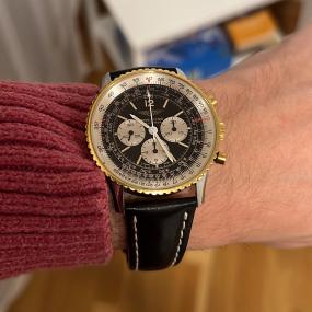 Depuis que je suis tombé dans l’horlogerie, la Breitling Navitimer a toujours été là, en arrière-plan. Une sorte d’évidence silencieuse. Une icône incontournable. Et pourtant, à chaque occasion, je l’ai laissée de côté, lui préférant une autre – un modèle plus discret, un style différent, un coup de cœur du moment. Mais un jour, presque par hasard, au détour d’une liquidation chez un grand bijoutier, elle m’attendait. Une Navitimer Blue Edition, 43 mm, équipée du tout nouveau calibre B01. Un modèle récent, mais encore signé du mythique logo à l’encre et aux ailes. Autant dire un clin d’œil au passé dans une robe contemporaine. Boîtier poli, bracelet pilote, cadran bleu profond. Belle, racée, technique. Évidemment, j’ai craqué. Comment ne pas céder ? Je suis reparti avec elle au poignet, le cœur battant, avec cette sensation euphorique d’avoir enfin trouvé “la bonne”. Mais voilà. Passée la lune de miel, j’ai commencé à douter. Oui, elle est impressionnante. Oui, le mouvement est top, la finition impeccable. Mais quelque chose manquait. Ce petit supplément d’âme. Ce charme un peu désuet, ce feeling brut qu’ont les Navitimer d’avant, celles d’avant les années 2010. Ce cadran panda, plus équilibré. Cette présence plus mesurée. Car malgré ses 43 mm “contenus”, l’ouverture du cadran la rend plus imposante qu’elle ne devrait l’être. Et ce bleu, associé au noir, manque peut-être de contraste. Trop de poli miroir aussi : entre le boîtier et le bracelet, c’est presque trop clinquant pour moi. Bref, elle s’éloigne – doucement mais sûrement – de ce que j’aime dans l’esprit Navitimer. Alors je réfléchis. Et si ce n’était qu’un pas de côté, avant le vrai saut ? Je pense à la revendre. Et à repartir vers un modèle plus ancien, plus pur. Une 2008, une 2009 peut-être. Ou même un vrai vintage. Cadran noir, sous-cadrans blancs. Un diamètre de 40 mm, parfait à mes yeux pour une montre d’aviateur. Et un bracelet perso, en cuir, qui raconte une autre histoire. Un côté plus tête brûlée si vous avez la réf. Parce qu’au fond, la Navitimer de mes rêves, je ne l’ai pas encore trouvée. Mais je me rapproche. Et c’est peut-être ça, la vraie quête horlogère : apprendre à écouter ce que chaque montre nous dit… pour finir par entendre ce que l’on cherche vraiment.