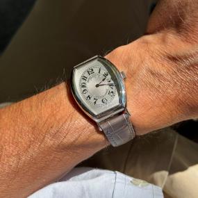Je ne suis pas naturellement très attiré par les montres en acier avec un bracelet intégré: je préfère largement les montres en or rose ou jaune avec un bracelet en cuir. Mais, quand j'ai découvert cette Alpine Eagle, j'ai été très séduit: le motif du cadran, inspiré de l'iris de l'aigle, est assez fascinant et la couleur grise, ainsi que les chiffres romains, lui donnent un aspect classique et habillé tout en étant sportif, ce qui, personnellement, me plaît. Son design contient évidemment des éléments qui rappellent la Royal Oak (les vis sur la lunette) et la Nautilus (les "ailerons" des deux côtés), mais elle a aussi une personnalité propre et les finitions sont de très bonne qualité (mélange de poli et de brossé). Ce que j'apprécie le plus, c'est la façon dont, étant assez fine (9.7mm) et bien dimensionnée, elle s'intègre parfaitement au poignet. Et, par rapport à ses illustres rivales, elle présente plusieurs avantages importants à mes yeux: un mouvement certifié COSC, une étanchéité à 100m avec une couronne vissée, un prix raisonnable et une disponibilité immédiate en boutique ou en ligne. Je trouve donc que c'est une montre idéale, non seulement pour l'été, mais même pour d'autres circonstances plus formelles ou habillées.