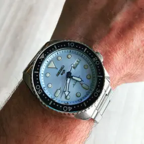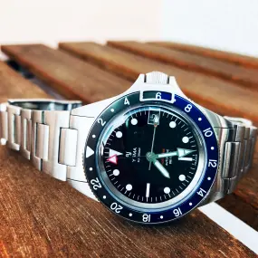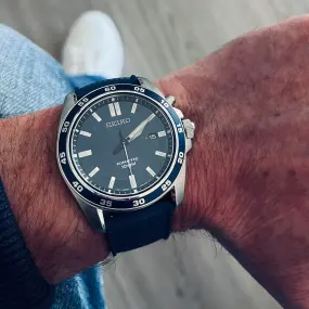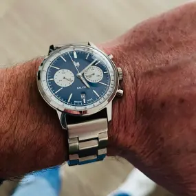 Je vous présente ma Citizen Bullhead chrono que j’ai commandée sur un site japonais j’aime beaucoup cette montre avec la couronne et les deux boutons poussoir situées en haut du cadran ,elle est à quartz vaste sujet la couleur bleu du cadran varie suivant l’intensité de la luminosité qui est du plus bel effet ,la manufacture japonaise a encore sortie une jolie montre très attachante mon fils vient à peine de me la rendre il l’adore ,elle a un diamètre de 38mm et un ATM 5 , le bracelet estampillé Citizen est au niveau de la fixation et du réglage comme un système maille milanaise.