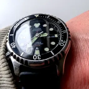 Je vous présente ma Citizen Promaster NY0040-17LE Montre Automatique…j’aime beaucoup cette montre de plongée japonaise une montre qui est solide et que je trouve esthétique elle est souvent comparée à la Skx de chez Seiko , ma citizen promaster à un diamètre de 42mm…et un verre minéral ce qui est le seul défaut que je lui trouve avec un verre saphir elle aurait eu un sans faute pour son prix qui est de 230 euros.J’avoue que j’ai un faible pour les montres japonaises, et les montres françaises de la marque Yema et Lip.