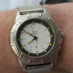 I wasn't swayed by the marketing surrounding this watch and the brand's concept, spearheaded by a CEO who wasn't entirely convincing. It was during a sale at Printemps that I finally succumbed to its allure. Its strengths lay in the innovative materials (a strap made from recycled fishing nets and a case from recycled plastic), as well as its exceptional legibility. Furthermore, I didn't have a solar-powered version in the collection. I wore this watch almost continuously for nearly eight months, but the verdict is clear: it doesn't evoke any emotion in me. It's lightweight and functional, and the strap is comfortable. The blue dial is a disappointment; I would have preferred it to interact better with light, to produce more striking effects. It was also the symbolic watch of the G7 summit, representing French craftsmanship and the concept of recycling. In that respect, it holds a place in history. The Awake Concept brand has since taken a different direction: limited-edition automatic watches with a focus on artistic crafts. All traces of this history have been erased from the website. Similarly, when I contacted them to ask how to clean the bracelet, I received no response. For those interested, the bracelet is perfectly machine washable. So, it's an interesting, historical, legible, and easy-to-wear piece. But the brand seems to be a marketing ploy with no respect for its history (you're allowed to evolve a concept, but it's best to keep the original elements on the website) or for its customers.