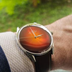 From a classic design at first glance, attention to detail brings this subtle, differentiating and poetic variation. There are the obvious ones: the box, first of all, which immediately immerses you in the world of the book and will immediately find a place in your library. Then the dial, understated and refined with its Canson paper finish, reveals a delicate depth that plays with the light. And then there are the subtleties: the tapered indexes and tapered hands, reflecting delicate precision. Then there's the shape, the very slight oval of the concave bezel, which gently brushes the strap in a beautiful continuity: poetic! The warm and timeless Camel leather adds a touch of authentic character, contrasting with the polished steel of the case. It is finished with a beautiful quote that you can choose from several, on the inside in my case: "Live in seconds, think in eternity." And what more details: the very slightly domed sapphire crystal and the brushed bezel enhance the play of light. It is a piece of emotion, an object designed to accompany and remind us that time, too, can be beautiful to look at.
