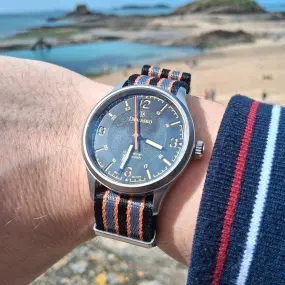 Citizen Bullhead "Challenge Timer" from November 1972. This is a model that I absolutely wanted to have in my collection for its endearing look, its technical characteristics as well as for its reputation that continues to grow. So I went in search of my wild beast... After much research and in the middle of a jungle of tinkered parts or with horribly repainted dials I was finally able to find this model in excellent condition and totally original with a beautiful patina. It was mounted on its original steel bracelet but I then found a Nato that fits it perfectly! Concerning the operation, the push buttons are very smooth with this caliber 8110A equipped with a column wheel. In addition to the automatic winding, day and date functions, it has a chronograph with the "Fly back" function. It should be noted that apart from the chronograph, the Bullhead does not have a second hand. Its only small flaw is its crown nestled between the 2 pushers which is very small and which is wound with the fingernails... I was very pleasantly surprised by the quality of manufacture and finish as well as its formidable precision even after more than 50 years of service. In conclusion, if you like chronos and are looking for a watch that has style, you will fall like me under the spell of this little bull full of vigor and character!