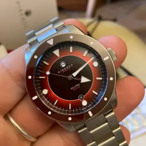 Hello everyone I am sharing with you today my opinion on this Doxa Army. I have now had the watch for 3 months and I can say that it is a real treat. I rarely take it off. Why the Doxa as a diver? It's simple, I wanted something other than the big brands that you find everywhere. We are really on something more intimate. I never get tired of its dial. It does not leave you indifferent when you meet other enthusiasts then This watch is made to live, it was already on vacation with me recently (at the sea), the case does not mark easily except the back which shows a few micro-scratches more quickly. A quick rinse with clear water to avoid salt accumulation. The dimensions are very good: - diameter 42.5mm - Thickness 11.95mm (compared to 13.65mm for the 300T) - Between lugs 20mm The bezel insert is in black ceramic. Very good readability in the dark. I put the watch through the timegrapher, it's impeccable, between 0/+1 second/day. It weighs 170gr on the steel bracelet (with a few fewer links). And 105gr on the BNO big hole vulcanized rubber bracelet For information, my wrist is rather flat and is 17.5cm. The only criticism I will make is its steel bracelet. Although very comfortable and the buckle very well designed. It is a little heavy for me.