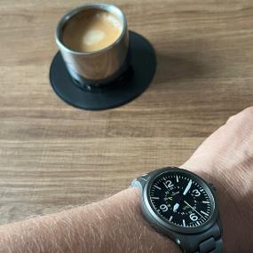 As a lover of tools and the Valjoux 7750 caliber, and a fan of the OW brand and its philosophy, I quickly gravitated toward this beautiful Astrochron. It's worth noting that the brand guarantees Origin +90% Swiss Made, a very important detail in terms of value for money, when some barely exceed the mandatory 60% by cheating here and there... So I'm a fan of this caliber, certainly very common, but which has survived the decades without major issues. The unidirectional winding gives it a crazy charm, in my opinion, when the oscillating weight goes crazy, reminding us unpredictably throughout the day of the presence of this timepiece on your wrist. Some hate it, but I love it! Here we have a variation of the Valjoux 7750 with this 7753 version, which differs in the arrangement of the sub-dials, and which incorporates a discreet pusher at 10 o'clock to quickly "jump" the date to the months in 30 days, for example, without having to unscrew the crown, and that's great. Despite all its intrinsic qualities, I'm quite disappointed with the brand. While this watch is a real tank ready to face anything, the ceramic bezel has cracked twice, and this was without any damage on my part. I own a C-1000 (also OW) which is currently in service for the same reason... Upon inquiries, the brand has apparently changed bezel suppliers to address the problem. However, I've lost confidence in my OW watches for my daily life as a technician who needs a durable tool without question. I switched to another reputable tool brand, and today I wear a Sinn 856 UTC, which perfectly fulfills the role of an everyday toolwatch, allowing you to do everything without worrying about this kind of problem. I'm also disappointed by the Super Luminova, especially on the hands, which fades far too quickly to be readable all night. While yes, the lum is very attractive with its presence on the bezel for the first 20 minutes, it's important to note that night vision is necessary in certain professions, like mine, as a sound technician in live performance.