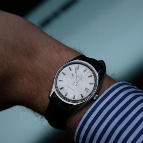 This Omega Seamaster 300 is my very first mechanical watch and I acquired it in 2002 to mark a turning point in my professional career. A fan of James Bond at the time, I discovered the Seamaster on Pearce Brosnan's wrist in the film Golden Eyes. It must be said that the marketing did its job well, this watch is well highlighted and it makes me wonder about this watch that I find beautiful and that I did not know. I am a good customer, it embodies through Bond's stunts, the idea that I had of the adventurer's watch: readable, robust, waterproof, precise... and beautiful in a tuxedo of course. At the time there were very few ways to find out about the collections, we did however have the possibility of ordering online, or of picking up in store, the brands' catalogs. The Omega catalog contained little technical data on the models but good quality photos. I quickly identified a version of the Seamaster 300 that was much more attractive to me than Bond's... the black dial version named Sir Peter Blake... magnificent! Determined to find out more about this watch, I searched the internet and came across the blog of the TicTac addict who had posted a superb review of this model, the ref. 2254.50.00. I was doomed, and after several visits to ADs, testing the watch and a lot of time spent dreaming about it, I ended up buying it in a store. It would not leave my wrist for almost 20 years. I wore it every day, in all circumstances, in the water, in the sand, while I was tinkering or playing sports... but also in a suit... I never had any problems with it, a service at Omega every 7/8 years and it was good to go. What I particularly like about this watch, and which I have never tired of, is its dial. Very dark matte gray textured with discreet matte black wavelets and with beautiful oversized uncircled and very luminescent indexes. Their size and shape are reminiscent of those of some vintage Seamasters like the ref. 165.024. The enormous triangle at 12 o'clock gives it a unique look and recalls that of the ref. 565.007. The date window is very well integrated, with white numbers on a black background. The "lance" type hands are very large and very luminescent as well, a shape that was found among others on the ref. 165.024 in any case for the hour hand. In short, a watch that I would describe as well inspired by the iconic Seamaster models but with its own personality. I should point out that at the time of purchase, I had no idea of the history of the Seamaster and had never seen any vintage models. It was only recently that I found these family ties in the indexes and hands. The finishes of the case are top-notch for a watch of this price, significantly lower than that of a Sub at the time. There is brushed on the sides of the case, sandblasted and polished on the lyre lugs. The screwed back is engraved with a beautiful logo and wavelets that are supposed to make the watch less slippery on the arm once in the water... and that is indeed the effect felt. The watch is relatively thin at 12 mm and sits perfectly on the wrist. Its size is reasonable with a diameter close to 40 mm excluding the crown and a lug to lug of 48 mm. A size that I find very acceptable for a so-called diving watch. The metal bracelet is however well dated 2000s with a folding clasp of good quality but too wide for my taste which has become thinner over time. I have therefore played around with the bracelets quite a bit and for several months I have only worn it on a black leather one from ABP which, in my opinion, suits it perfectly. This configuration has rekindled my passion for this watch and I like to wear it regularly, observing the marks of time on its case which has only been polished once, during its first revision. I particularly like to admire its dial and be amazed by the precision it still demonstrates after so many years.