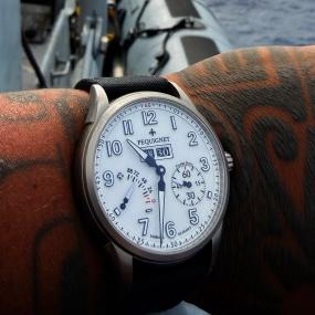 An extraordinary watch, extreme in its design, magnificent in its finishes, 100% French in its DNA. It accompanies me everywhere, and every day reminds me that we, in France, also know how to make high-quality watches. A true source of national pride on my wrist. I would like to share my immense satisfaction with an exceptional piece: the Pequignet Royale 300 blue dial, blue bezel, reference 9050473. Now removed from the brand's catalog, this version remains a remarkable watch on every level, so much so that I can no longer part with it. In a world dominated by Swiss and Japanese brands, Pequignet proves that France deserves its rightful place on the international watchmaking scene. Not only is the design meticulous and powerful, but above all, it houses a 100% French caliber, the Calibre Royal.