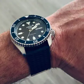 I present to you my Seiko 5 Suits Style in a different version and that we do not see much, it is sold with the Milanese mesh bracelet stamped Seiko (K1) or with a pretty rubber strap with Seiko pin (K2) ... I really like the Seiko 5 and not long ago Seiko has just released the new Seiko 5 SKX SRPK87K1 which recalls the five models of 1960 ... My Seiko 5 Suits is very pleasant and easy to wear not heavy and pretty with variations in color of the dial depending on where you are ... the diameter is 42.5mm the glass is in Hardlex (reinforced mineral) with ATM at 10 (the crown is not screwed) heir to the SKX but it is no longer a diver.