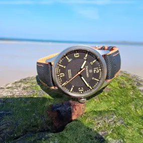 SICURA Globetrotter 21 rubies with manual winding. This is a very unusual watch from the 70s thanks to its triple hour hand and its colored bezel. Indeed, beyond the classic hand, there is also a GMT hand and especially an improbable NYT (New York Time) hand. They work together when setting the time. The 41mm case has a very beautiful black dial with tritium dots and numbers as well as a date window at 3 o'clock. The bi-directional yellow and blue aluminum bezel allows you to know the time of the 24 cities listed in the flange. The case back uses the brand's traditional cabinets. The movement often remains Sicura's negative point since their goal was to offer Swiss watches at a lower cost. My copy has a modest EB 8027 caliber (Ebauches Bettlach). Note that there are also automatic versions. At an auction, its originality, its colored bezel and its magnificent hands seduced me.