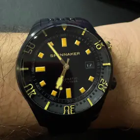 The Spinnaker Bradner Automatic Noir Radiance is a watch that blends vintage inspired diver design with modern execution and strong everyday usability. It is clearly influenced by classic super compressor dive watches, but it does not feel like a pure throwback. Instead, it presents a familiar design language in a contemporary and well balanced way. Specifications Model Bradner Automatic Noir Radiance SP 5062 44 Movement automatic movement japanese (Seiko NH35A) Case material stainless steel Case diameter 42 millimeters Case thickness approximately 14 millimeters Lug to lug distance approximately 50 millimeters Dial color black with radiant finish Crystal sapphire crystal Water resistance 180 meters Crown type dual crowns with internal rotating bezel Bezel internal rotating dive bezel Bracelet stainless steel bracelet Clasp fold over clasp Caseback solid caseback Review The first impression of the Bradner Noir Radiance is defined by its vintage diver character. The case size of forty two millimeters feels well judged and wearable, and the lug to lug distance of around fifty millimeters helps keep the watch balanced on the wrist. It has enough presence to feel like a proper dive watch, but it avoids feeling oversized or bulky. The overall proportions work very well for a wide range of wrist sizes. The dual crown layout is one of the key design elements. One crown is used to set the time, while the second crown operates the internal rotating dive bezel. This internal bezel setup is a clear nod to classic compressor style divers and adds both functionality and visual interest. The crowns are easy to grip and operate, and the internal bezel turns smoothly and precisely. The dial is where the Noir Radiance version really stands out. The black dial has a subtle radiant finish that reacts nicely to light and adds depth without becoming flashy. It feels refined and understated at the same time. The indices are clean and well applied, and legibility is strong. The overall dial design feels purposeful and balanced, which fits the diver tool watch concept very well. Build quality is solid throughout. The case finishing feels clean and consistent, and the watch gives a reassuring sense of quality when handled. For the price category, the Bradner feels very well put together. The stainless steel bracelet matches the case nicely and contributes to a cohesive overall look. It feels sturdy and appropriate for a dive watch, without being uncomfortable or overly heavy. Inside the watch runs an automatic movement that is reliable and proven. It is not a luxury caliber, but it is robust and easy to live with, which suits the character of the watch perfectly. This is a watch meant to be worn regularly, not something that requires special treatment. With one hundred eighty meters of water resistance, the Bradner is more than capable for everyday water exposure and recreational swimming. It may not be a professional saturation diver, but it delivers more than enough performance for its intended use. What makes this watch special What makes the Bradner Automatic Noir Radiance stand out is the combination of vintage compressor inspired design and modern execution. The internal rotating bezel, dual crowns and restrained dial design give the watch strong character without making it feel like a costume piece. It offers a lot of classic diver charm while still feeling relevant and wearable today. Potential negative aspects There are a few points that may not appeal to everyone. The internal bezel design is visually distinctive, but some people may prefer a traditional external dive bezel. The case thickness is noticeable and may limit comfort for those who prefer slimmer watches. When and how to wear it The Bradner works extremely well as an everyday sports watch. It pairs easily with casual outfits such as jeans, T shirts and sweaters, and it also works well with smart casual looks. It is a great option for travel, weekends and daily wear. While it is not designed as a dress watch, it can still be worn in relaxed professional environments where a classic diver fits naturally. Conclusion The Spinnaker Bradner Automatic Noir Radiance is a well executed vintage inspired diver that offers strong design, solid build quality and good value for money. It respects classic dive watch aesthetics while delivering modern reliability and comfort. For anyone who appreciates internal bezel divers and wants something slightly different from the usual offerings, this is a very attractive and well rounded option.