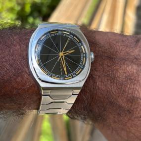 I present to you my Superman 241117 blue dial from the 70s. It's in really great condition considering its age. It's currently the only watch I own with a blue dial, and frankly, it's amazing! Sometimes dark, sometimes bright, or even dark as the abyss. There have been several dial versions with different indexes. I particularly like the U-shaped indexes in this dial, highlighted with a yellowed tritium line and pointed inside the U. Of course, we find the legendary Yema bezel block, Bakelite bezel, and spade second hand. In the end, it's my most Dress diver!