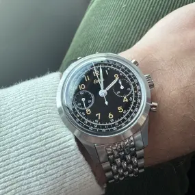 Après la sobriété de la Heritage Black, je me suis tourné vers l'Eska Light Racing Sunset. Ce qui m’a séduit dans ce chronographe, c’est le mélange entre l’esprit "racing" et des codes plus classiques, portés par une typographie Breguet très réussie ; détail qui donne à la montre une allure intemporelle. Esthétiquement, le cadran saumon de la " Sunset " apporte au modèle une fraîcheur et un style bien affirmé. Le contraste avec les aiguilles bleues, la typo blanche liserée de bleu est super lisible. Accompagné d'un strap bleu, l'association est élégante. Au quotidien, je la monte sur un ladder band acier, cela lui offre un rendu néo vintage que j'affectionne. Le dos de la montre n'est pas en reste et arbore la skyline de Lyon, gravée sur son fond. Côté mécanique, elle est animée par un mouvement automatique Peacock. Pour être honnête, le défaut du mouvement est son balancier, très "présent", mais pour le prix d’un méca-quartz, on dispose ici d’une vraie mécanique... le compromis reste très bon. Mon bémol principal : l’épaisseur générale du boîtier. Avec une chemise ajustée, le manque de finesse devient vite gênant au poignet. Elle souffre d'autant de différence que l'Heritage dont elle est la petite soeur est parfaite sur ce point. Au final, cette Light Racing est une pièce intéressante. Elle propose un design soigné, un cadran aux détail très réussis et un placement tarifaire cohérent. Le reste est histoire de compromis.