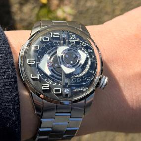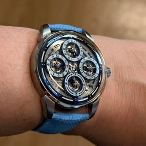 Lorsque l’on voit ce garde temps on comprend qu’on entre dans un univers hors de commun, dans un univers de poésie, dans une histoire qui nous transporte loin du marketing habituel de l’espace, de la mer ou encore des montagnes gravies. Ici tout est beau, le cadran bleu neige, le polissage Zaratsu le mouvement Springdrive, on en prend plein les yeux et la tête. Cette trotteuse qui file traversant les indexes à la vitesse d’un samouraï au galop sans le moindre tressaillement. On comprend qu’on est dans la poésie et l’art magique Japonais. Une réussite totale d’une beauté caractérisée