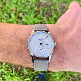 Une montre que je qualifierais d’attachante. Le combo 38mm et cadran blanc est pour moi une évidence sur ce modèle. Cette couleur apporte à mon sens le petit twist dont elle a besoin pour ne pas ressembler à une énième field militaire noire, bien qu’elle en soit une des plus célèbres représentantes. J’apprécie particulièrement sa finesse de 9,5mm et l’acier microbillé du boîtier, qui donne un rendu mat, tout en discrétion, et la rend hermétique aux rayures. La taille de la couronne apporte un bel équilibre et la rend plaisante à manipuler. Le mécanisme à remontage manuel est aussi pour moi tout à fait cohérent avec l’esprit de cette montre, avec une réserve de marche confortable de 80h, de plus très agréable au remontage. Je trouve la précision correcte. Il s’agit d’un grand 38mm (encore plus vrai avec le cadran blanc), du à ses longues cornes. J’aurais apprécié un 37/36mm pour un meilleur équilibre et un ADN vintage plus prononcé. Je change régulièrement son bracelet d’origine pour un nylon 2 brins couleur sable qui match à la perfection avec les index et les aiguilles. Cependant à cause des longues cornes je trouve que le confort au porté n’est pas terrible sur des bracelets 2 brins. Il y a aussi un sujet sur l’étanchéité qui n’est que de 5atm, assez contradictoire pour une field mais force est de reconnaître que l’on est ici plus dans une field « esthétique » qu’autre chose. En tout cas je ne lui en demande pas plus. Dans les choses qui fâchent, le contrôle qualité de la marque est à mon sens mauvais. J’avais acheté un exemplaire pour lequel je m’étais rendu compte quelques jours après qu’ils y avait un poil blanc enroulé autour des aiguilles et un défaut dans l’acier au niveau du réhaut (un minuscule trou). Après échange, je me suis aperçu après plusieurs semaines que le nouvel exemplaire que j’ai eu a son cadran légèrement mal centré. L’aiguille des heures n'est pas formidablement bien alignée non plus. Il faut avoir le nez dessus et cela reste léger donc je m’en suis accommodé. Heureusement, j’ai l’ai eu à un prix d'achat neuf très intéressant. Le bracelet d’origine est également d’une qualité discutable avec des empiècements qui sont j'imagine en similicuir et qui s’abîment rapidement. C'est finalement une montre facile à porter avec une belle identité mais aussi avec quelques défauts, ce qui ne m'empêche pas de l'apprécier.