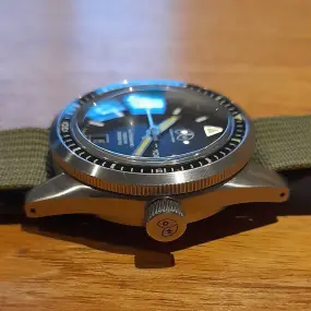 Un craquage complet sur cette Hanart chrono, que j'ai découvert au poignet de Steve McQueen, car la petite histoire de cette montre, est qu'elle était portée par l'acteur au quotidien. Elle est assez épaisse, mais cela passe très bien avec son look vitange. Très lisible avec une luminescence remarquable dans l'obscurité, montre aviateur oblige. La couronne est taillée idéalement pour la prise en main des réglages, avec un ressenti qualitatif au remontage (elle est manuelle). Le bracelet cuir Bund est souple, confortable, et de qualité. D'abord réédité en 42mn, Hanhart l'ont ensuite sortie en 39mn, comme la version originale. C'est cette version en 39mn que j'ai achetée, taille idéale pour ce modèle je pense. Bref, une montre dont je ne me lasse pas, et qui se porte sur une multitude de bracelets.