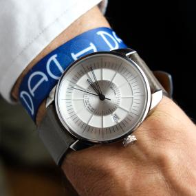 Acquise début 2015, je recherchais une montre de type Bahaus et avait laissé Junghans de côté pour une double raison : tarifaire et verre non saphir (à l’époque). Avec cette Junkers 6060-5, j’ai fait l’impasse sur le saphir mais obtenu un prix inférieur à 400€ qui me semblait satisfaisant. Caractéristiques globales intéressantes : mouvement Miyota 9132, diamètre de 40mm, corne-à-corne de 43.4, épaisseur de 12.2mm, poids 62gr, verre hésalite, 3atm… Une complication H24 à 6 heures, pas vraiment utile mais qui donne un certain cachet. J’apprécie aussi beaucoup la réserve de marche, relativement discrète et utile. Le cadran n’est pas tout à fait blanc, finalement assez vintage, mais uni, sans charme particulier. Ses dimensions générales, poids compris, en font une montre très agréable à porter. Dommage pour le verre, et pour son image de Junghans du pauvre, faiblesse à laquelle je n’accorde aucune importance !