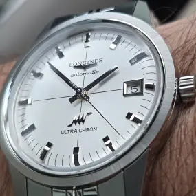 J'ai succombé à la forme de cette montre que je trouve très originale. En écoutant Julien dans un épisode de Petites Montres Entre Amis, je me suis dit qu'il était temps que je regarde les vintage Longines de plus prêt et notamment la collection Ultra-Chron reconnue comme l'une des toutes 1ères montres équipées d'un calibre 5Hz. En fouillant sur les différents sites de ventes de montres d'occasion, je découvre celle-ci à la forme inédite ! Les aiguilles sont d'origines - si on se réfère aux pubs de l'époque - la cadran strié, la couronne à 4 heures lui donne un côté asymétrique... Elle vient de rejoindre ma collection asymétrique avec la Zodiac Olympos et la Omega Constellation D-Shape ! Elle aurait été encore plus réussie sans la date qui impact la pureté des lignes... A noter une configuration désuète avec un boitier monobloc qui s'ouvre en retirant le verre... Je laisse faire cela à l'horloger qui va la réviser dans les prochains jours 😎