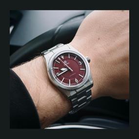 Après une dress watch et une field, il fallait une plongeuse. Sur un poignet de 16,5/17cm, il fallait une plongeuse fine, pour une question de confort à l’usage. Avec ses indicateurs polis, et son cadran dégradé ( du noir au gris ) la visibilité et la lisibilité du cadran sont très bonnes. La date à 3h est discrète et facilement lisible aussi. Sont cadran frappé en vague est très original et on s’y plonge ( sans mauvais jeu de mot ) très souvent.