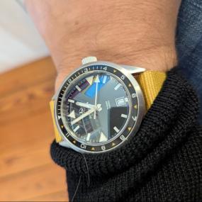 Je prends un moment pour vous partager et vous faire découvrir une montre de ma collection que j'affectionne particulièrement. Cela fait maintenant 5 ans que je détiens cette montre et je ne me lasse toujours pas de la mettre au poignet. J'ai découvert ce modèle dans une boutique Panerai. Dès que je l'ai essayé la magie a opéré. Je pensais que ses 47mm de diamètre et une bonne épaisseur allaient être bien trop disproportionnés mais pas du tout ! Je dois avouer que j'ai un poignet de 19 cm . Je suis tombé sous le charme directement et pour plusieurs rasions - Tout d'abord son cadran (que je ne me lasse pas de regarder) avec sa boite coussin poli qui se pose parfaitement. Les index California d'une simplicité et visibilité à tout épreuve ont aussi retenu mon attention. J'aime aussi l'histoire de ce type de cadran. Je suis aussi sensible à l'histoire de Panerai. C'est une montre historique. La dimension historique des montres est important pour moi. Le mouvement mécanique 3 jours de réserve est cohérent avec la pièce. C'est un vrai plaisir de remonter sa montre. Je n'ai jamais eu de problème. J'aime aussi la couronne de cette montre joliment travaillé type oignon. Le fond de boite est transparent. Vous me direz cela n'est pas cohérent pour une montre ayant une histoire forte issue de la plongée mais j'aime prendre le temps de regarder le mouvement. Certains n'aiment pas Panerai pour diverses raisons. Mais je dois dire que j'aime car il y a une vraie identité. C'est assumé. J'aime ce type de marques qui assument pleinement leur ADN. J'ai ajouté à cette montre un bracelet ABP couleur marron clair grainé qui va parfaitement avec la montre. Il fait très bien ressortir le cadran. Bref, cela fait 5 ans et je ne me lasse toujours pas. A chaque fois que je la passe au poignet je prends encore un vrai plaisir.