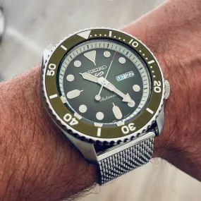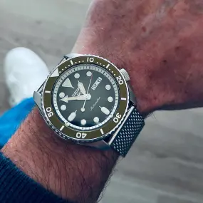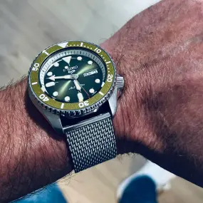 Je vous présente ma Seiko 5 Sport avec bracelet maille milanaise d’origine j’aime beaucoup cette montre et cette manufacture japonaise son diamètre est de 42mm le verre est en hardlex elle est très agréable à porter et à un look très agréable comme beaucoup de Seiko 5 ,le prix de cette montre est de 300 euros.