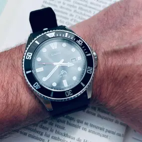 Je vous présente ma Seiko 5 Suits Style dans une version différente et que l’on ne voie pas beaucoup ,elle se vend avec le bracelet maille milanaise estampillé Seiko (K1) ou avec un jolie bracelet caoutchouc avec ardillon Seiko (K2) ...J’aime beaucoup les Seiko 5 et il n’y a pas longtemps Seiko vient de sortir les nouvelles Seiko 5 SKX SRPK87K1 qui rappelle les modèles five de 1960...Ma seiko 5 Suits est très agréable et facile à porter pas lourde et jolie avec des variations de couleurs du cadran suivant la ou l’on se situe ... le diamètre est de 42,5mm le verre est en Hardlex (minéral renforcé) avec ATM à 10 (la couronne n’est pas vissée) héritière de la SKX mais ce n’est plus une plongeuse.