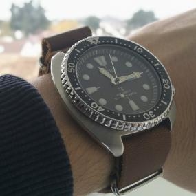 Je cherchais une montre auto assez robuste, étanche à 200m mini, stylée et dans un budget inférieur à 900euros. Je me suis rendu chez mon bijoutier horloger favori (monsieur Medard à Versailles) qui m a alors fait découvrir ce modèle incroyable et assez exclusif car il s agit d une édition destinée au marché US uniquement. Le cadran reproduit les écailles d une tortue marine. Les variations de couleurs et de textures du cadran sont captivantes. Seul petit bemol sur la précision pas génial du mouvement (30secondes par jour ça commence à faire beaucoup).. malgré son diamètre de 45 mm elle se porte facilement et est très confortable.
