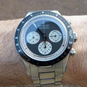 Steinhart et cette océan one ont clairement puisé leur inspiration de la marque à la couronne .Pour ma part je n’ai jamais été trop attiré par les plongeuse (hormis panerai) et par rolex. Mais il faut bien dire qu’il me manquait une montre de ce style dans ma collection .Il me fallait un 4x4 tout terrain que je puisses mettre en toute occasion . Sans même chercher je suis tombé dans un cash converter sur cette steinhart à prix relativement bas et je me suis laissé tenter à l’essayer. Tout de suite la qualité se fait ressentir la montre pèse son poids et les finitions du boîtier sont vraiment bonnes . La lunette tournante unidirectionnel céramique et vraiment du plus belle effet et respire la solidité. Le bracelet est plutôt agréable au porté et le fermoir est plutôt de bonne facture . L’étanchéité de cette montre permet de tout faire sans se prendre la tête et le mouvement qui est soit un sellita soit un eta est plutot fiable .Bref tout ce qu’il me fallait pour une montre de ce style .Le côté hommage ne me dérange pas pour ma part car n’ayant ni les moyens , ni l’envie d’avoir une rolex je ne suis pas frustré de ne pas avoir l’original. Si vous voulez une montre de qualité , fiable et tout terrain swiss made à un prix très abordable cette montre est faites pour vous
