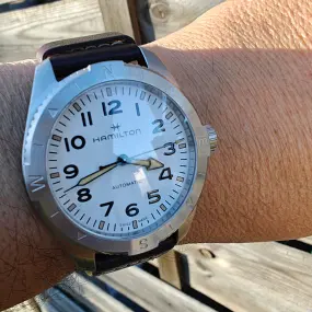 On ne présente plus Timex, fondée en 1854 aux États-Unis sous le nom de Waterbury Clock Company. Cette entreprise horlogère est mondialement reconnue pour ses montres fiables et abordables avec des finitions tres correctes. Je vous présente donc mon chrono Timex Expedition North Field, issu de la série Expédition North , que j'ai pu trouver à moins de 100 euros malgré des spécifications super intéressantes. On se retrouve donc avec un boîtier en acier recouvert d' un pvd de couleur gun metal titane , une couronne vissée (étanche à 100 m) et un verre saphir, rien que ça. Bien sûr, son diamètre de 43 mm en fait un chrono très présent sur un poignet d'une circonférence de préférence de 17 cm minimum, mais dans mon cas, ça passe crème. Le bracelet silicone est confortable et surtout j'aime look du boitier (cadran noir avec index et aiguilles vertes et blanches) et la finition pvd qui donne lui un vrai look militaire. C'est le type de montre que l'on met vite fait le matin sans se soucier de la régler grâce à son mouvement quartz. J'avais déjà repéré la version classique automatique full titane, mais finalement, une occasion peu onéreuse s'est présentée sur cette version chrono et j'en suis ravi.