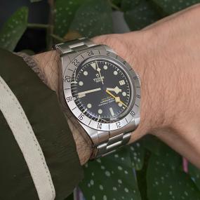 Encore une envie de deuxième fuseau horaire mais qui ne ressemble pas à une GMT Master. J’apprécie l’hyper lisibilité et la chaleur de ce cadran, avec cette très légère et subtile patine des index céramiques. L’aiguille GMT jaune snowflake a fait pencher la balance. La couleur c’est la vie ! Une montre avec une très belle présence au poignet même si elle est un peu grassouillette il faut l’avouer. 1mm ou 2mm d’épaisseur en moins auraient été les bienvenus. Mais ça passe… Le brossé soleillé de la lunette 24h est remarquable. Un diamètre de 39mm, des cornes joliment chanfreinées, une couronne de belle taille et un calibre Manufacture MT5652 COSC complète le tout. Encore un joli coup de Tudor avec un prix bien positionné. Ce que l’on ne trouve plus chez sa grande sœur.
