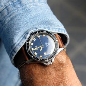 Belle montre acquise il y a quelques mois pour mes fiançailles. Je recherchais une montre de plongée fine au design raffiné avec un mouvement manufacture et j'ai eu la surprise de tomber sur ce modèle. Yema a développé une nouvelle version de la Superman avec un cadran sobre (bleu ou noir) et équipée d'un calibre micro rotor.